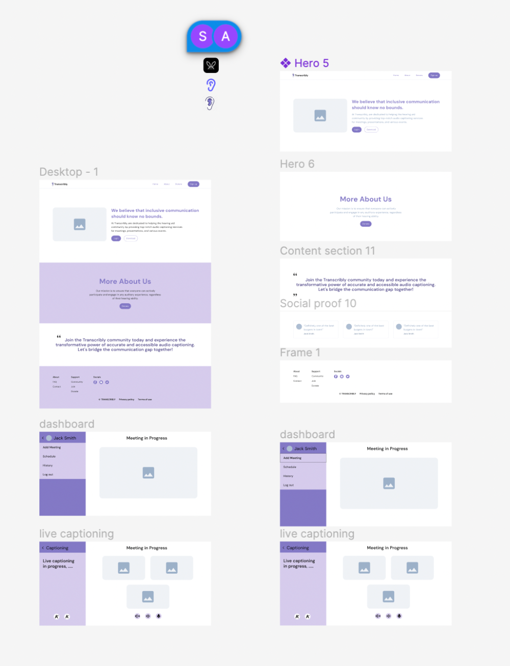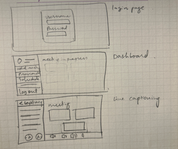 The paper wireframes are subsequently transformed into a high-fidelity prototype, encompassing a product-focused home page that provides comprehensive information, coupled with an intuitive dashboard seamlessly guiding users to the live captioning site for virtual meetings. It can be viewed here.